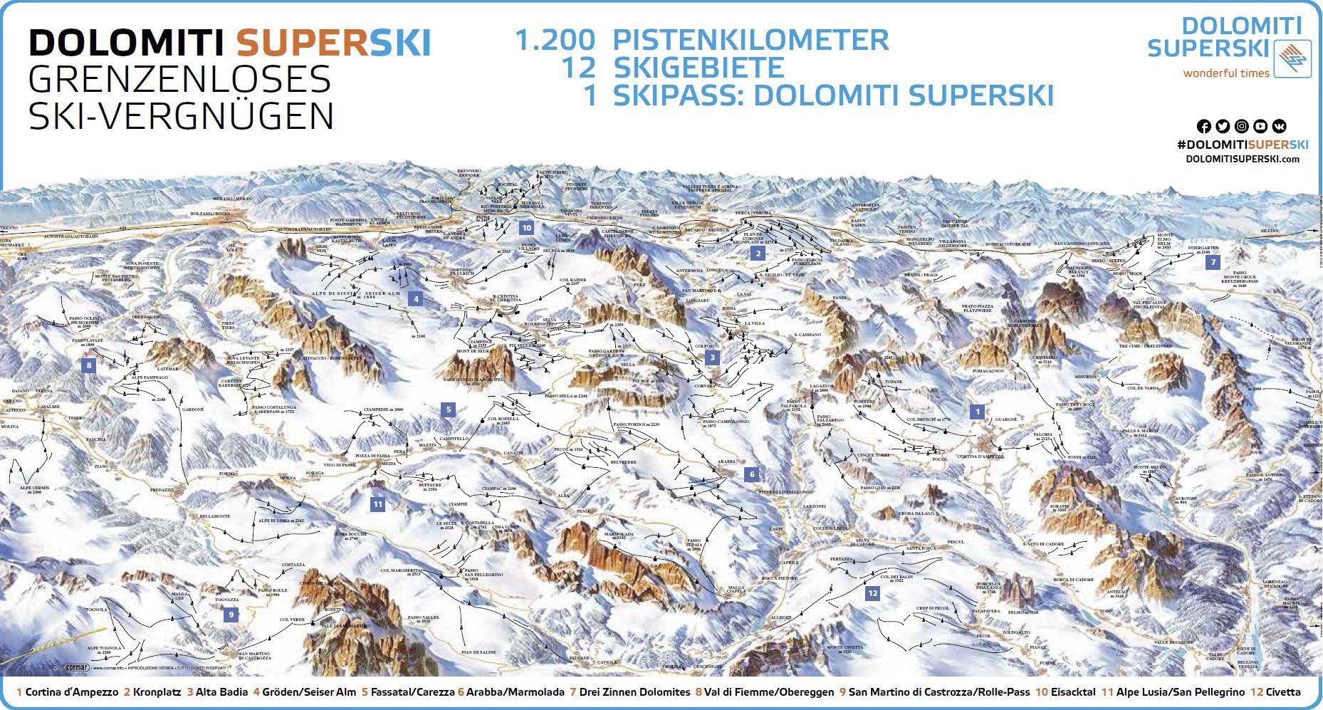 Piantina delle piste Dolomiti Superski